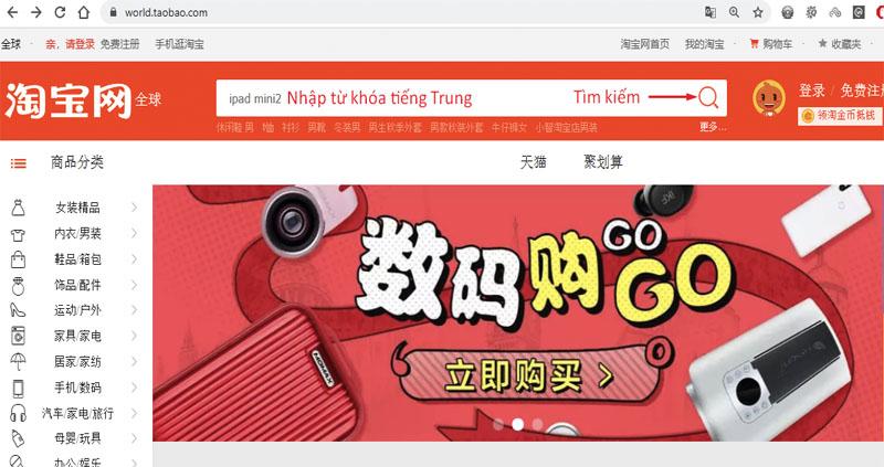Tìm kiếm sản phẩm bạn cần mua trên taobao