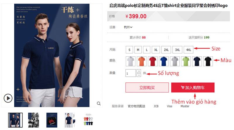 Bước 3: Chọn sản phẩm, màu sắc, kích thước, số lượng và cho vào giỏ