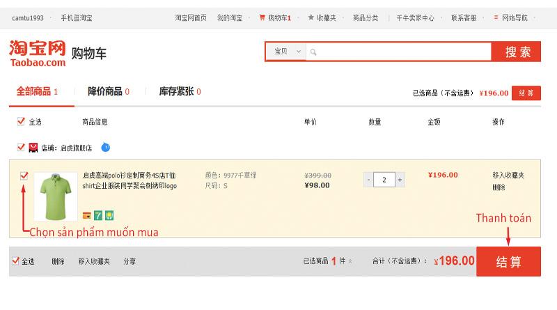 Với 6 bước thực hiện vô cùng đơn giản như trên, bạn đã có thể đặt cho mình món hàng yêu thích trực tiếp trên Taobao mà không phải thông qua dịch vụ trung gian nào.